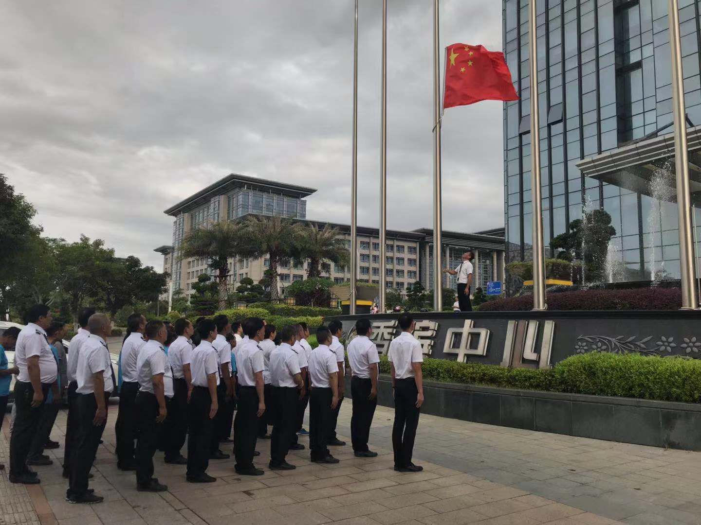 升旗儀式安保隊(duì)合影2019年8月1日上午,迎著清晨的暖風(fēng),在八一建軍節(jié)這個(gè)特殊的節(jié)日里,泉州繽海物業(yè)于集團(tuán)香繽中心寫字樓前舉行升旗儀式,慶祝建軍92周年。物業(yè)公司全體員工參加,按部門整齊列隊(duì),一切準(zhǔn)備就緒。由保安隊(duì)和新入職員工代表組成的國旗護(hù)衛(wèi)隊(duì)喊著響亮的口號、邁著整齊的步伐護(hù)送國旗走來,全體員工行莊嚴(yán)注目禮,唱國歌,五星紅旗冉冉升起。 繽海物業(yè)一直秉承:全心全意為業(yè)主服務(wù),努力為業(yè)主提供一個(gè)優(yōu)質(zhì)舒適 ……